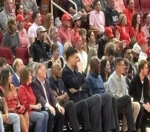 姚明与大梦来到火箭主场观战!队记:姚明让大梦看起来像后卫