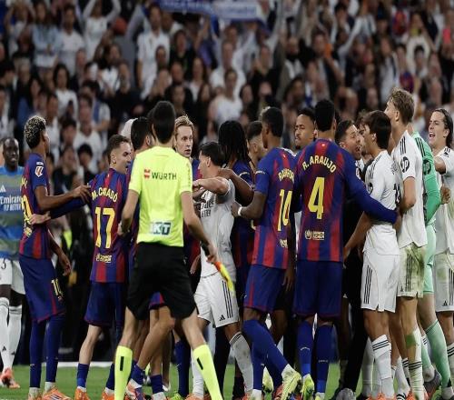 雷速体育10月27报道 本赛季首场西班牙国家德比,皇马主场2-1击败巴萨。双方球员在赛后发生大规模冲突。官方...
