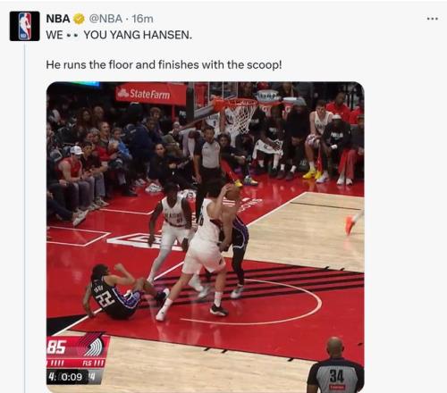 来自官方的肯定!NBA官方社媒连续更新动态盛赞杨瀚森