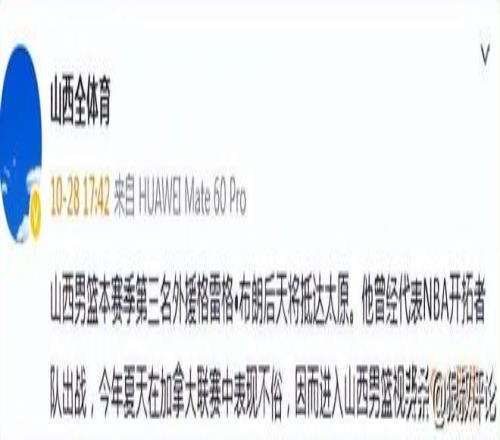 北京时间10月30日,根据最新的媒体报道,深圳,山东,山西分别启动了不同位置的外援,进一步补强外援名单,备战25-26赛季的CBA联赛。