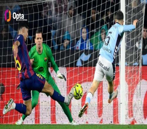 此役客场对阵塞尔塔,什琴斯尼把守的巴萨大门在上半场两度失守。