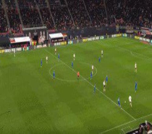 当时,维尔茨在左路拿球与沃尔特马德撞墙配合后,立刻沿中线横向带球,对方没有对他施加足够的干扰,维尔茨得以用了足足3秒观察队友跑位,随即送出一脚美妙过顶,直接打到防线身后,萨内接住“飞盘”,单刀命中。